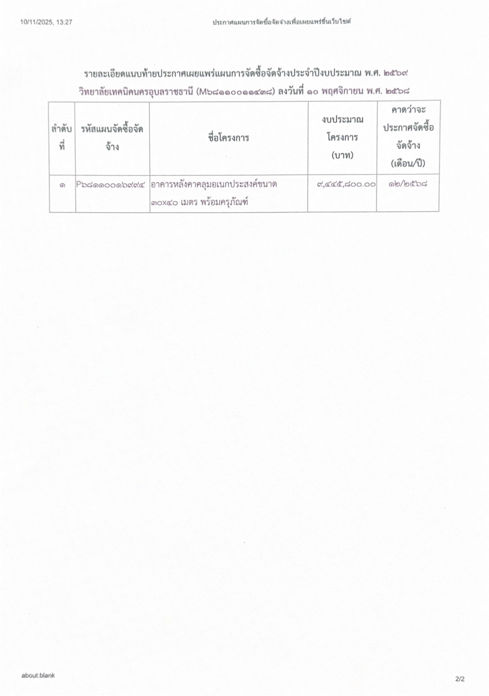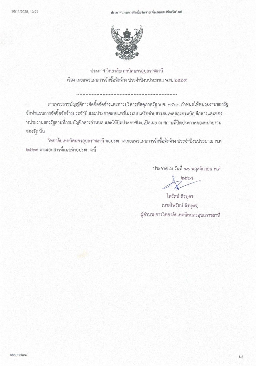 10-11-68 เผยแพร่แผนการจัดซื้อจัดจ้าง ประจำปีงบประมาณ 2569
