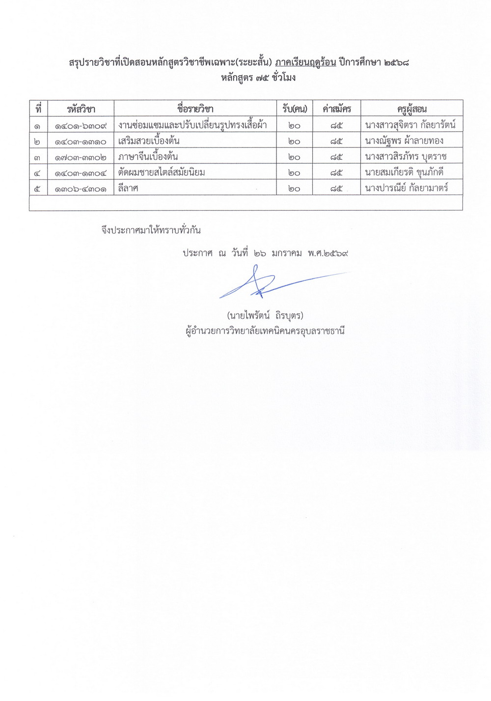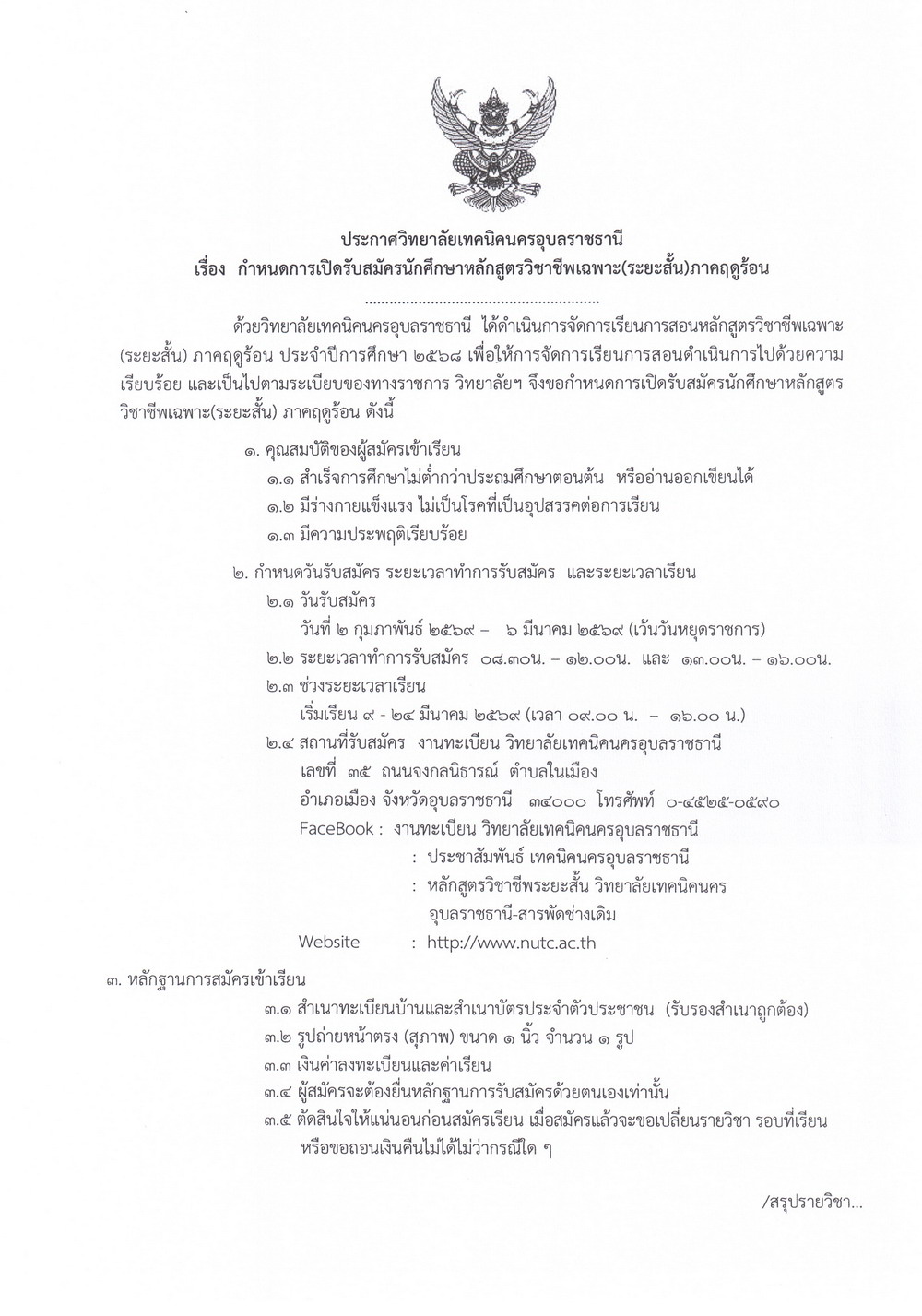 การสมัครเรียนหลักสูตรวิชาชีพเฉพาะ(ระยะสั้น) ภาคฤดูร้อน