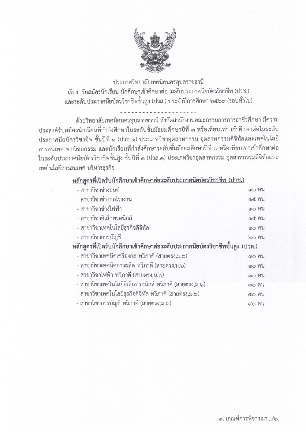 การสมัครเรียนหลักสูตร ปวช. และ ปวส.
