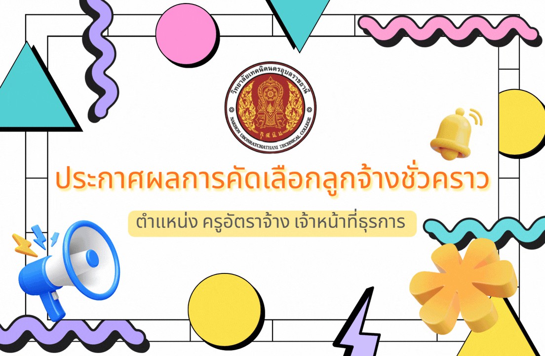ประกาศวิทยาลัยเทคนิคนครอุบลราชธานีเรื่อง ประกาศรายชื่อผู้มีสิทธิเข้ารับการคัดเลือกลูกจ้างชั่วคราว>> รายละเอียดเพิ่มเติม <<